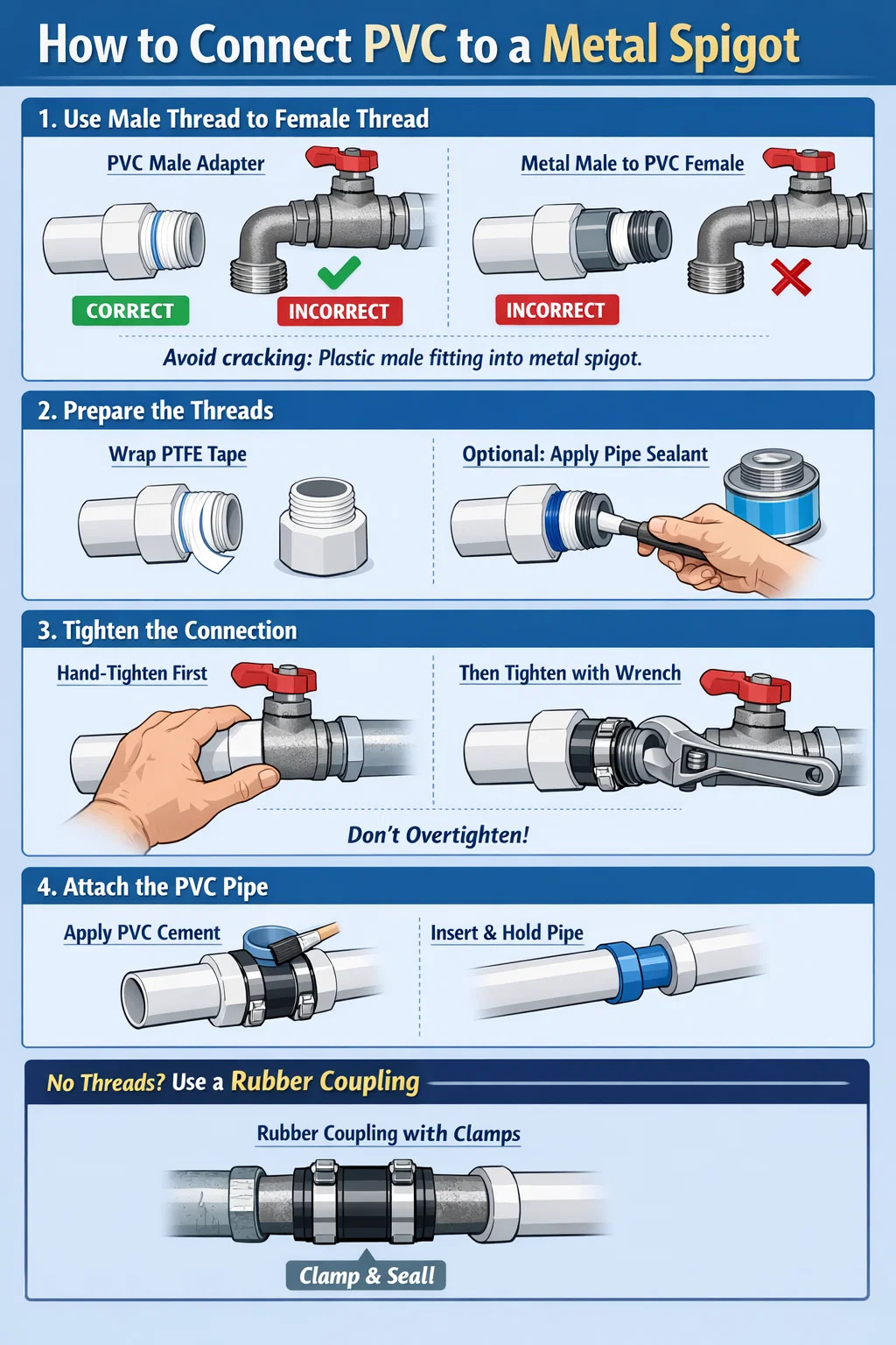 Łączenie rur PCV z metalowym czopem (metalowym kranem lub zaworem) jest częstym zadaniem podczas napraw domowych instalacji wodno-kanalizacyjnych. Ze względu na różną twardość i współczynnik rozszerzalności cieplnej/kurczenia się tworzyw sztucznych i metali, podczas łączenia należy zachować szczególną ostrożność, aby zapobiec wyciekom lub pęknięciom złączek.